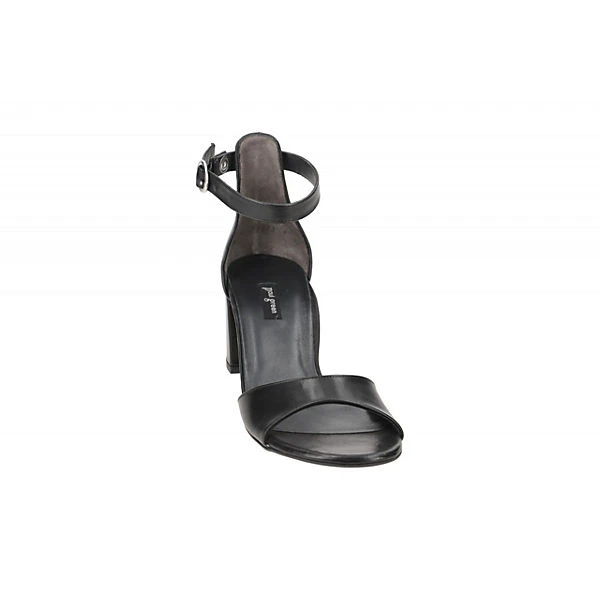 Hersteller: Paul Green Hersteller Art-Nr.: 6062-01x Modellname: 6062 Machart: Damen Sandalette – Riemchen Sandalen, Fessel-Riemchen Farbe: schwarz (black) Obermaterial: Echtleder – Glattleder (Foulard) Innenfutter: Echtleder Innensohle: Echtleder – Fußbett Wechselfußbett: nicht herausnehmbare Innensohle Laufsohle: Gummisohle Verschluss: Druckknopf, Weitenverstellung über Schnalle Absatzart: Blockabsatz Absatzhöhe: mittlerer Absatz, ca. 5,5cm Schafthöhe: Knöchelhoch Schuhform: rund Größenhinweis: fällt normal aus Weitenangabe: F – normal Weite