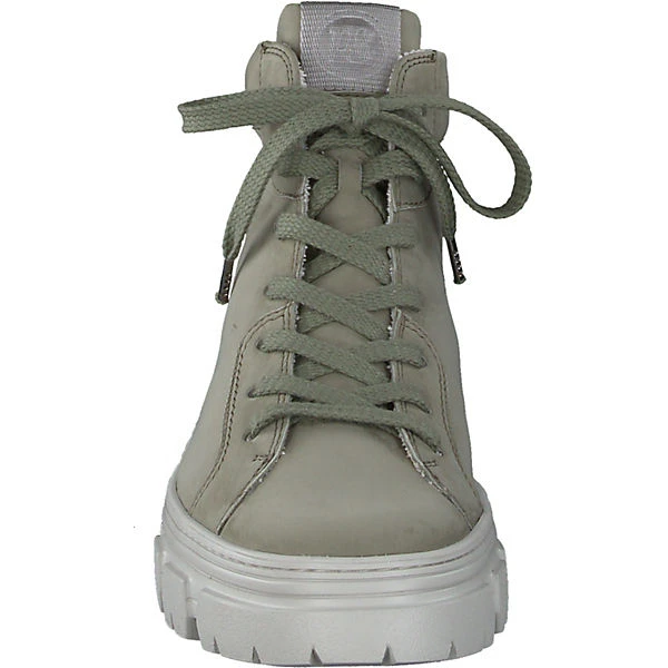 Diese trendigen Schnürstiefeletten von der Marke Paul Green ergänzen verschiedene Outfits. Eine komfortable Anpassung ist durch den Schnürverschluss möglich. Die Decksohle besteht aus atmungsaktivem Echtleder, das ein angenehmes Trageerlebnis begünstigt. Das Obermaterial zeichnet sich durch das echte Nubukleder aus.
